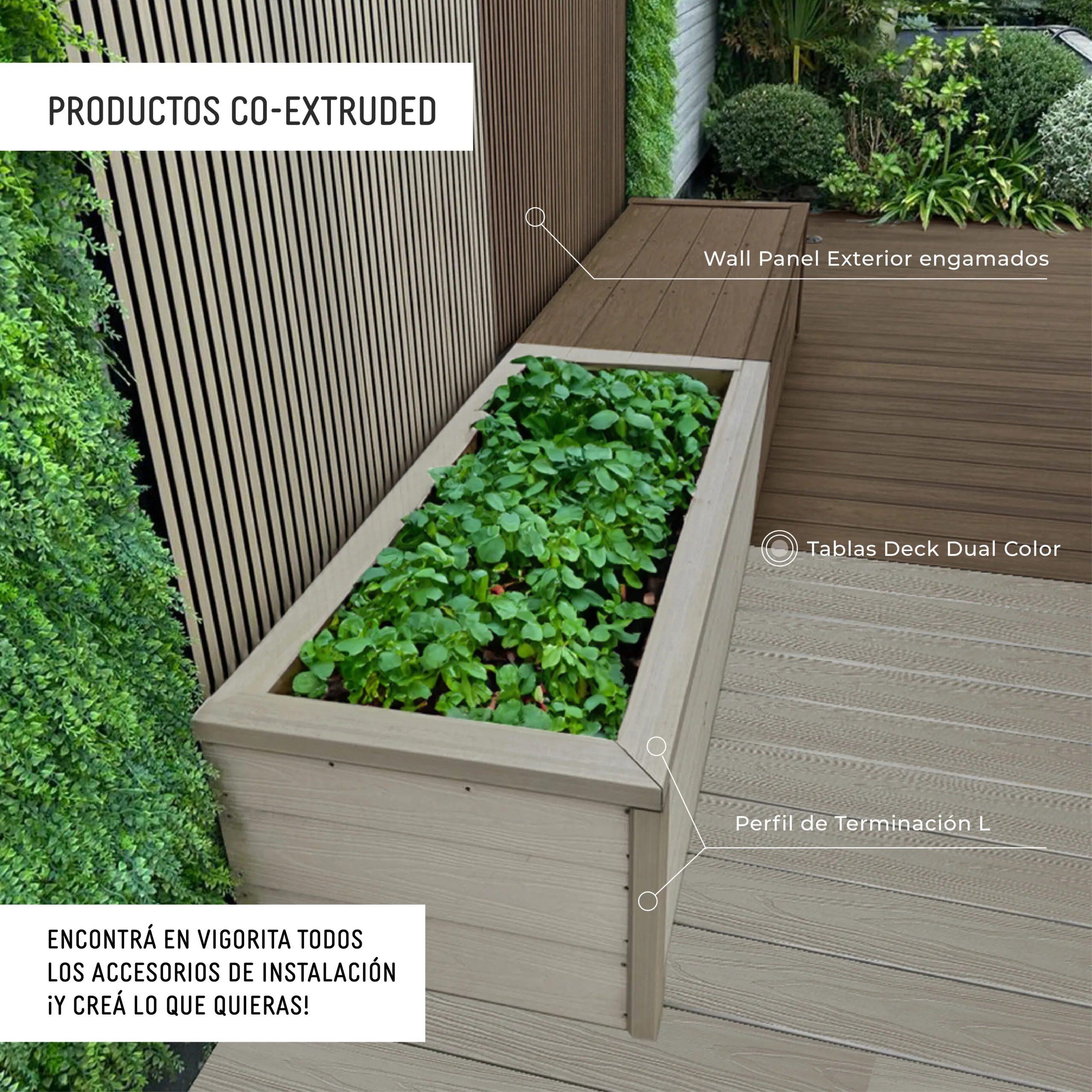 | Composición | Composite con fibras de madera y Coating protector de recubrimiento. |